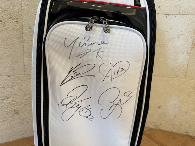 【荒木優奈プロ・伊藤愛華プロ・三ヶ島かなプロ・宮里優作プロ・宮里聖志プロ】サイン入りBRIDGESTONEのキャディバッグです。